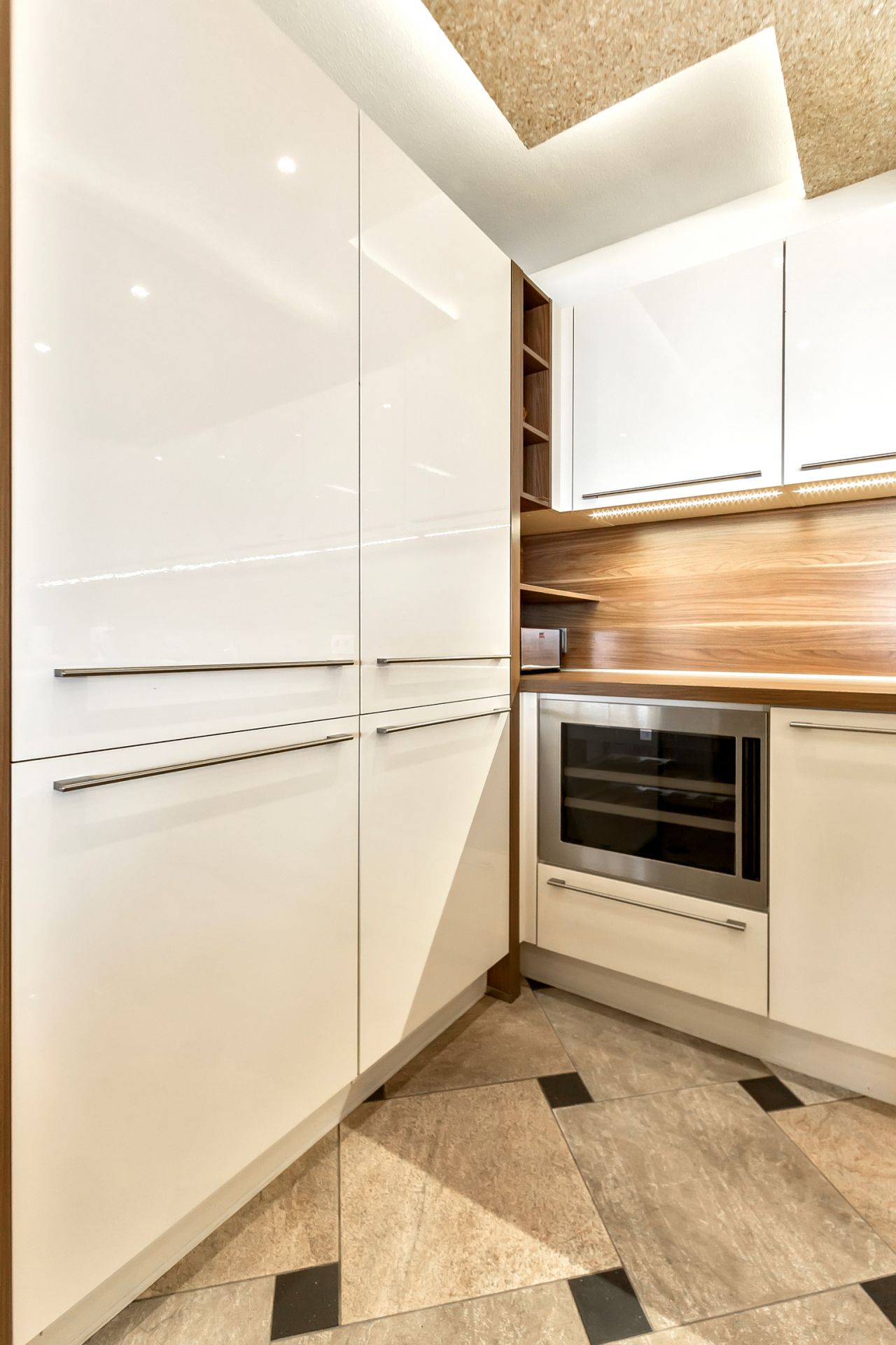 - Przestronny salon z otwartą kuchnią i jadalnią to harmonijne połączenie elegancji i nowoczesności. Kuchnia zachwyca minimalistycznym designem z białymi, lakierowanymi frontami i drewnianymi akcentami, tworzącymi ciepłą, przytulną atmosferę. Wyposażona w najwyższej klasy sprzęty AGD, takie jak wbudowane piekarniki, płyta indukcyjna oraz liczne szafki do przechowywania, jest idealnym miejscem do przygotowywania posiłków.