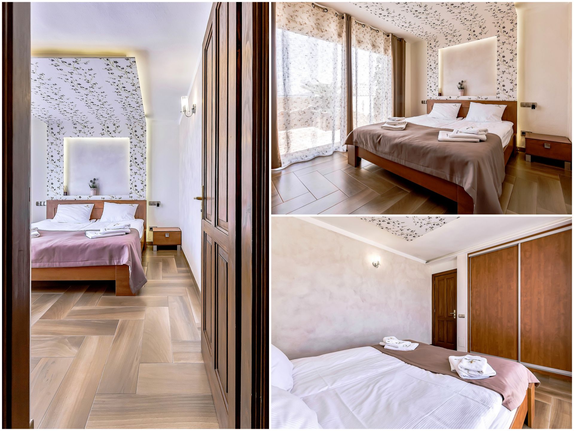 Ta część apartamentu zapewnia pełną prywatność i komfort, idealna do wypoczynku po dniu pełnym wrażeń. Pakiet składa się z trzech sypialni, dwóch łazienek i garderoby.