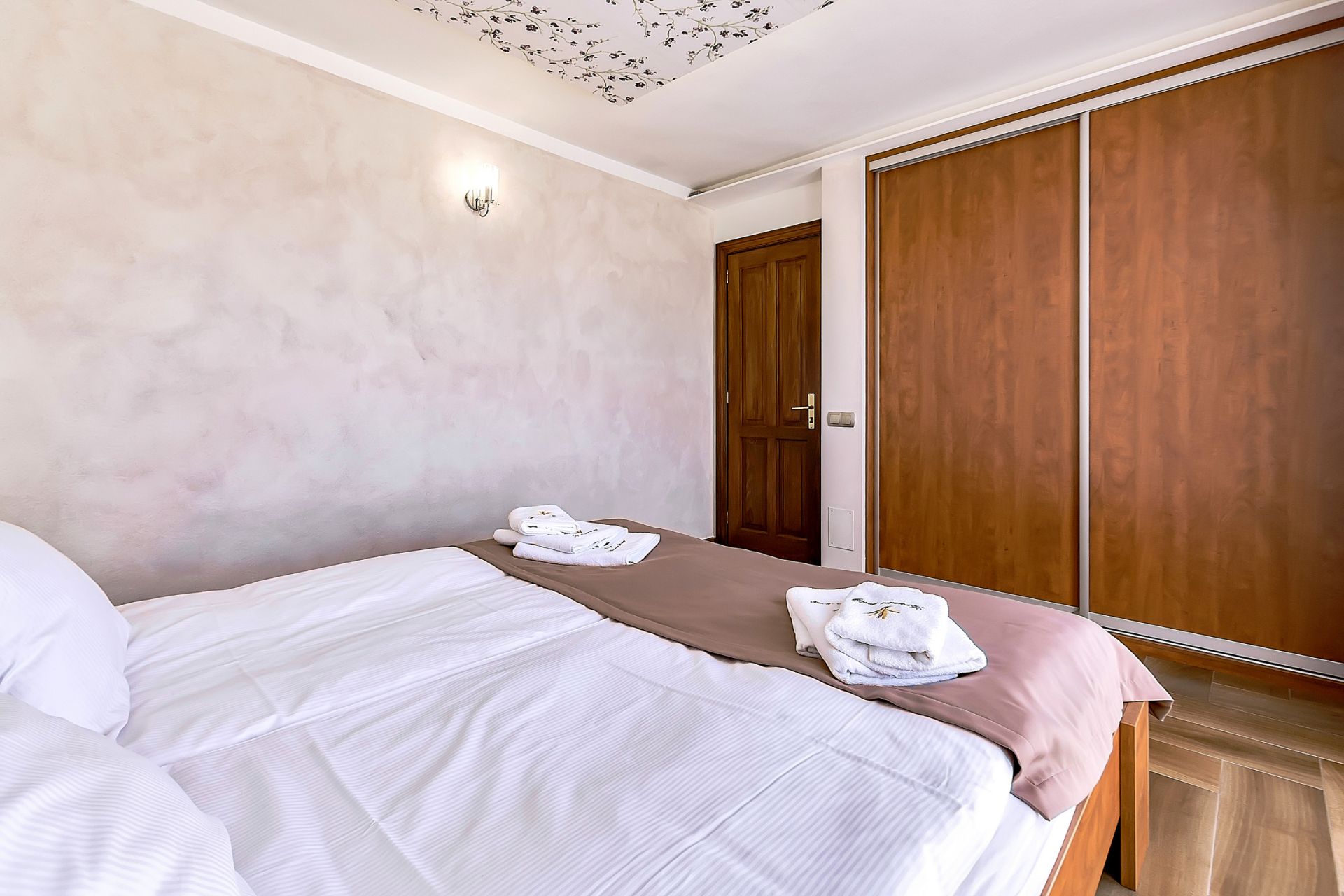 Ta część apartamentu zapewnia pełną prywatność i komfort, idealna do wypoczynku po dniu pełnym wrażeń. Pakiet składa się z dwóch sypialni i łazienki.